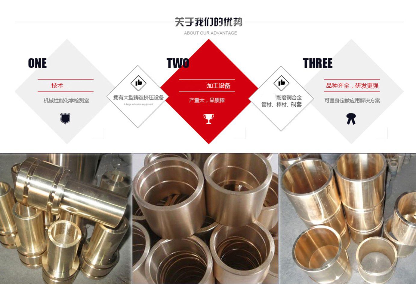 河間市銅套制品有限公司的生產(chǎn)設(shè)備精良,擁有40臺國內(nèi)外先進設(shè)備;工藝水平先進,擁有砂型鑄造,金屬鑄造,離心鑄造等技術(shù);是專業(yè)研究,開發(fā)自制的金屬制品企業(yè)。公司坐落于滄州市河間市束城鎮(zhèn),是國務(wù)院確定的經(jīng)濟開發(fā)區(qū),地處北方重要陸海交通樞紐,交通十分便捷,且位鄰米各莊物流園,物流十分快捷,全國各地達到48小時內(nèi)到貨。  主要經(jīng)營:公司主要生產(chǎn)銅套,自潤滑銅套,儀器配件等,如銅軸套、銅滑板、銅瓦、銅蝸輪、銅滑塊、石墨軸承、石墨滑板、汽車配件,儀表,絲杠,法蘭,沖壓件,儀器零件,國標,非標,各種規(guī)格各種材質(zhì)的金屬制品。  產(chǎn)品應(yīng)用領(lǐng)域:工程機械 水利機械 礦山設(shè)備 液壓設(shè)備 鍛造設(shè)備 化工設(shè)備 紡織設(shè)備 冶金行業(yè) 機械 重工輕工等諸多領(lǐng)域。  主要合作單位:首都鋼鐵集團 ,河北鋼鐵集團 ,唐山鋼鐵集團 ,承德鋼鐵集團, 北京普析, 天津塞特。  常用材質(zhì)介紹:錫青銅:以錫為主要合金元素的銅基合金稱錫青銅,錫青銅在造船、化工、機械、儀表等工業(yè)中廣泛應(yīng)用,主要用以制造軸承、軸套等耐磨零件和彈簧等彈性組件以及抗蝕、抗磁零件等,有高的強度、彈性、耐磨性和抗磁性,在熱態(tài)和冷態(tài)下壓力加工性良好,對電火花有較高的抗燃性,可焊接和纖焊,可加工性好,主要牌號有ZCuSn6Zn6Pb3,ZCuSn10Pb5,ZCuSn...
